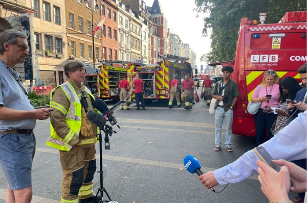 The London Fire Brigade said it received a call at 9:31 a.m. about a blaze in a single-story commercial property near the railway. Crews dispatched 10 fire appliances and roughly 70 firefighters, as well as a 32-meter aerial ladder platform to help tackle the fire from above.